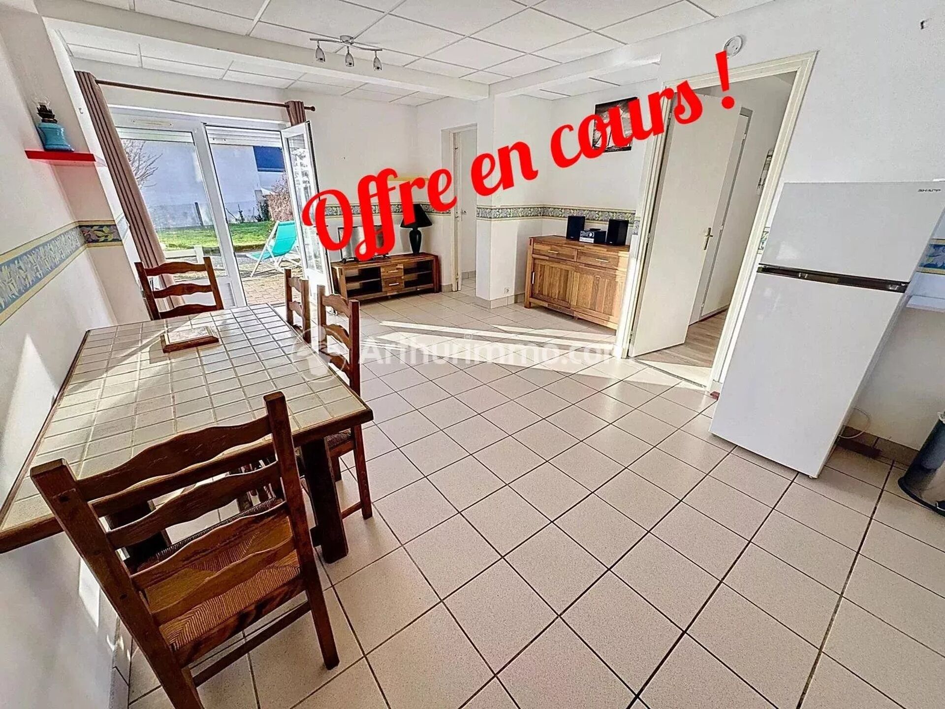 Au rez-de-chaussée d'une résidence calme, à 200m de la mer et 12mn à pied des commerces de Saint Quay, appartement T2 offrant une jolie pièce de vie et une grande chambre.