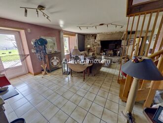 La maison principale, une bâtisse en pierre pleine de caractère, propose 5 chambres, dont une au rez-de-chaussée pour une vie de plain-pied. Rénovée, elle allie charme ancien et confort moderne avec un système de chauffage par aérothermie lui assurant un excellent classement énergétique (DPE B). Vous apprécierez la terrasse bois, le jardin arboré et la vue dégagée sur les prairies.