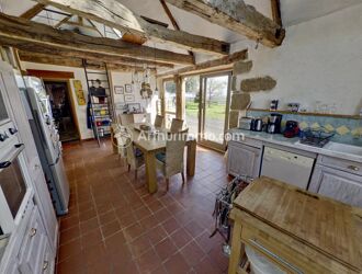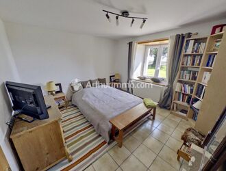 La maison principale, une bâtisse en pierre pleine de caractère, propose 5 chambres, dont une au rez-de-chaussée pour une vie de plain-pied. Rénovée, elle allie charme ancien et confort moderne avec un système de chauffage par aérothermie lui assurant un excellent classement énergétique (DPE B). Vous apprécierez la terrasse bois, le jardin arboré et la vue dégagée sur les prairies.